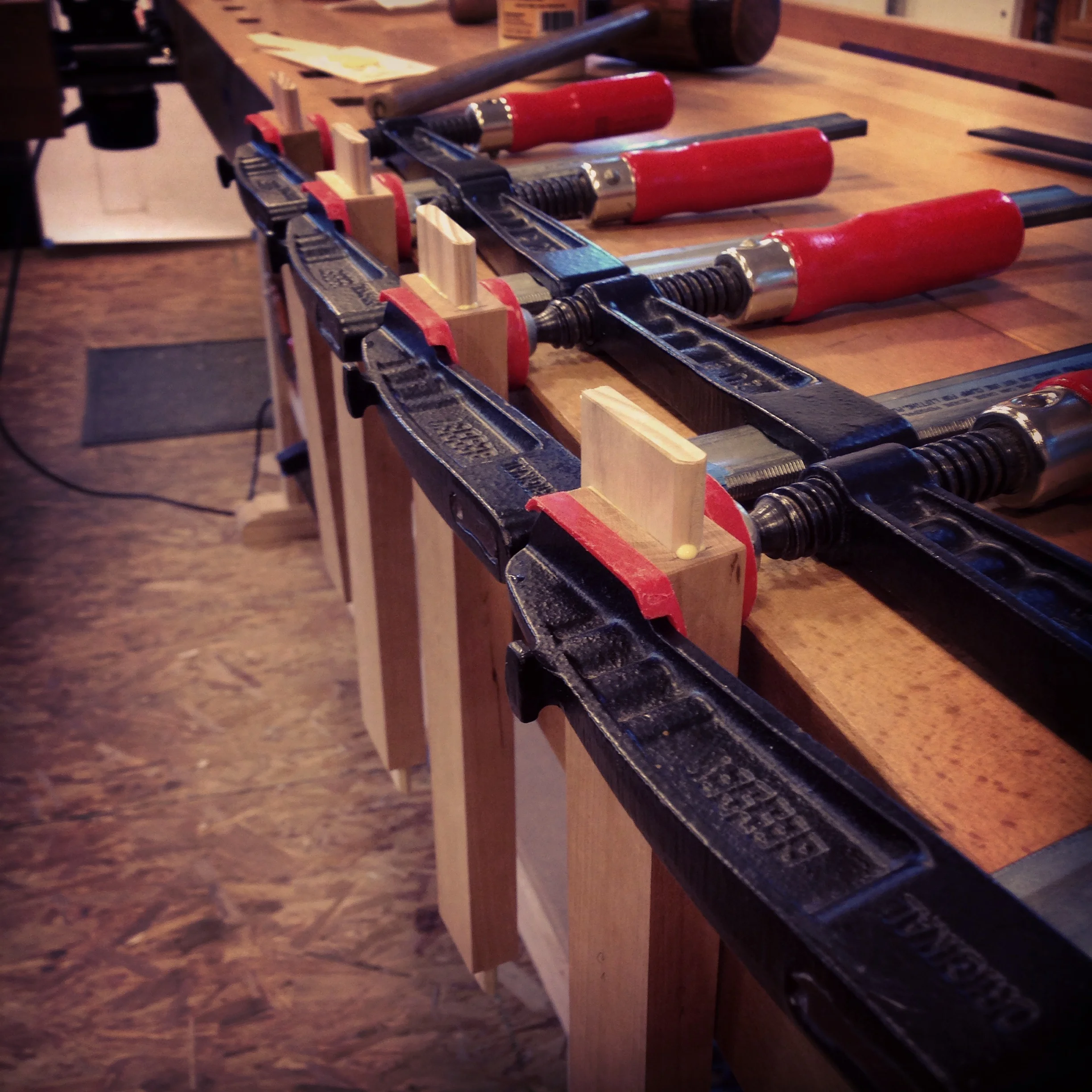 The sideboard case bottom is frame and panel construction. Or at least it is now. Originally it was going to be just an open rail/stile frame with no panels, but a bit of thought this morning convinced me to add panels. Time for more mortises, slip tenons and panels. Here are the drawer runners, I'm pre-gluing the slip tenons before assembly. Making furniture (and lots of other things) is a series of decisions. Hopefully you make the right ones. Consistently.