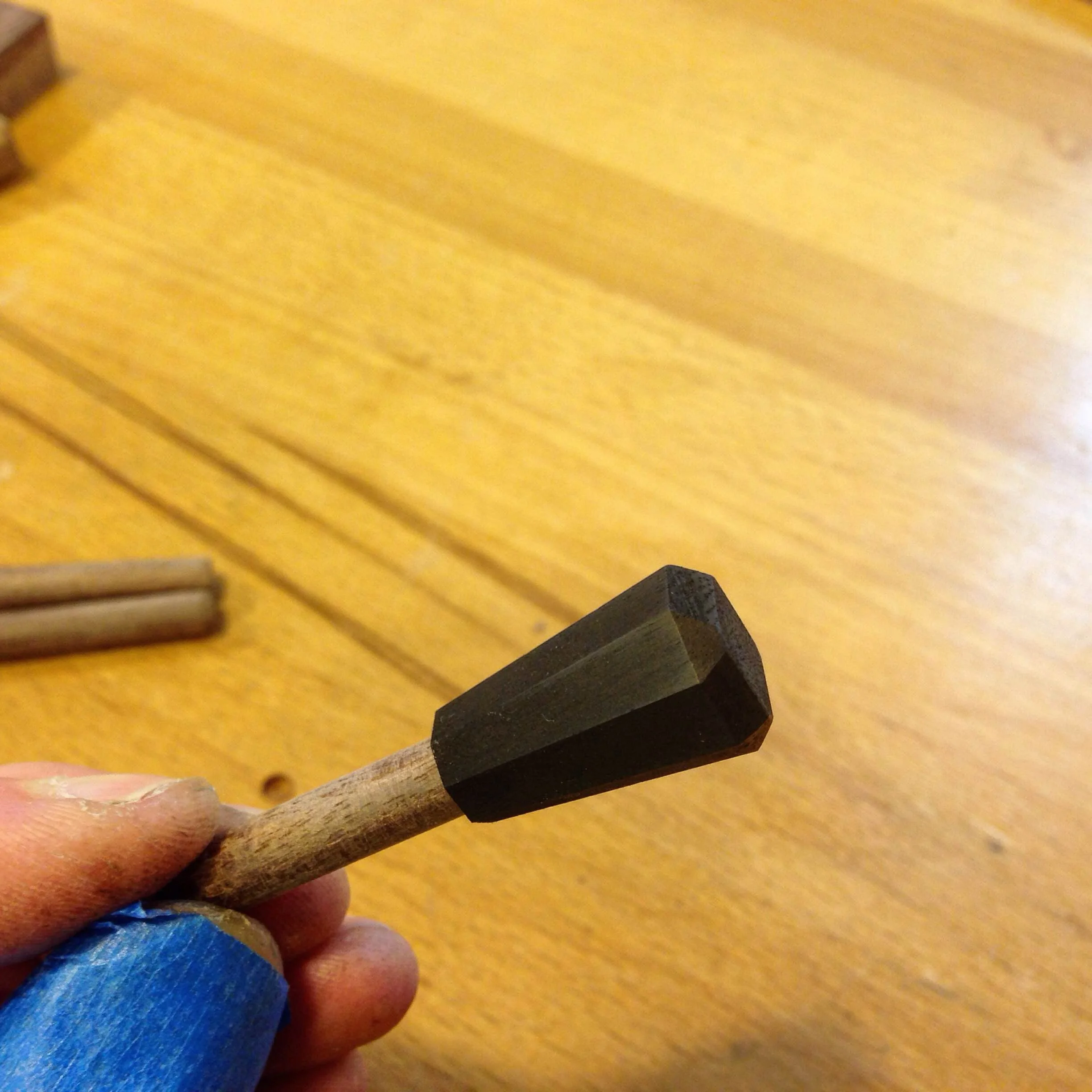Drawer Pulls, Again September 20, 2016 A closeup of one of the knobs. The tenon was epoxied into the knob, so they're one now.