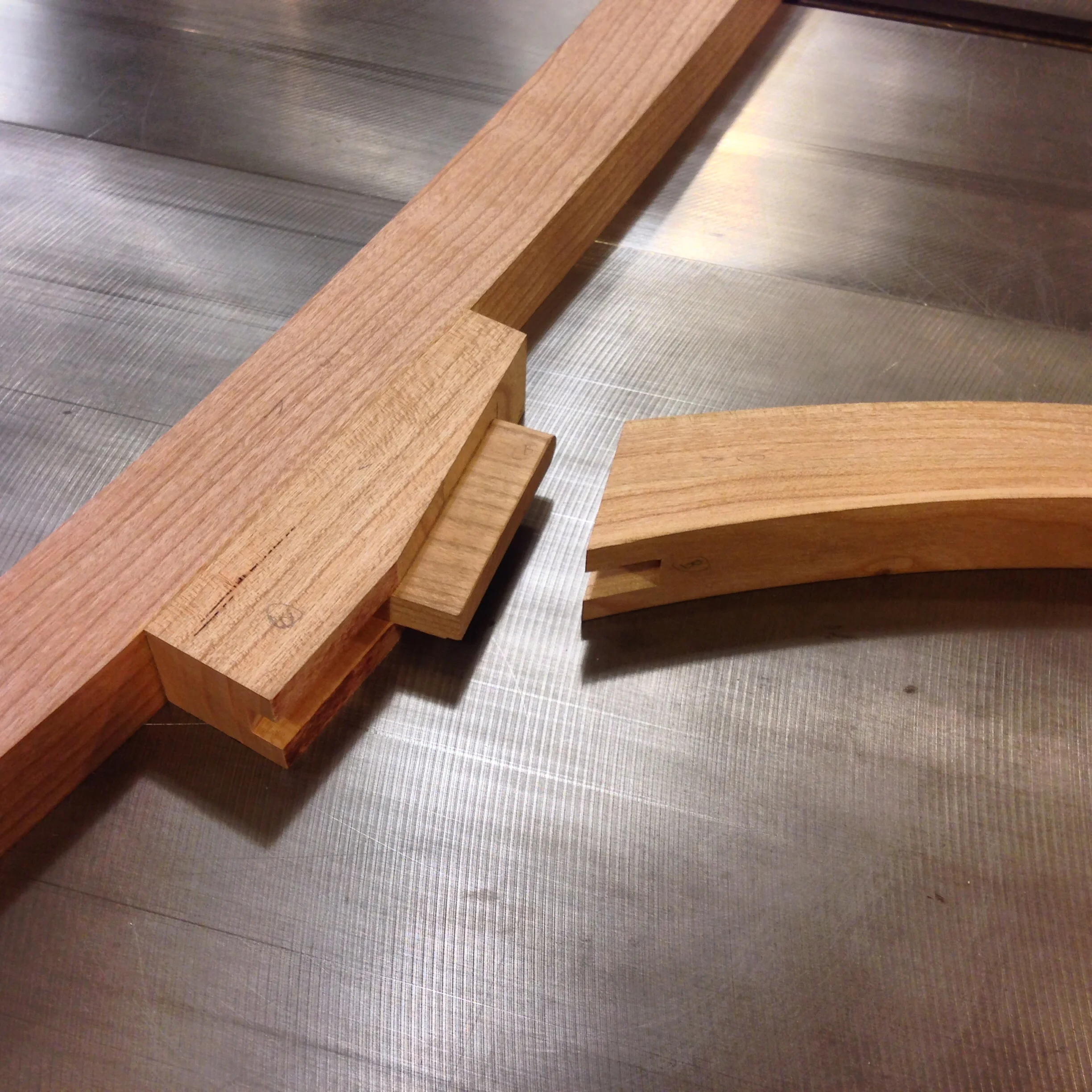 Here is the leg-to-stretcher joint. A good portion of the material at this joint will be removed with the bandsaw after glue-up. The loose tenon has already been glued into the leg.
