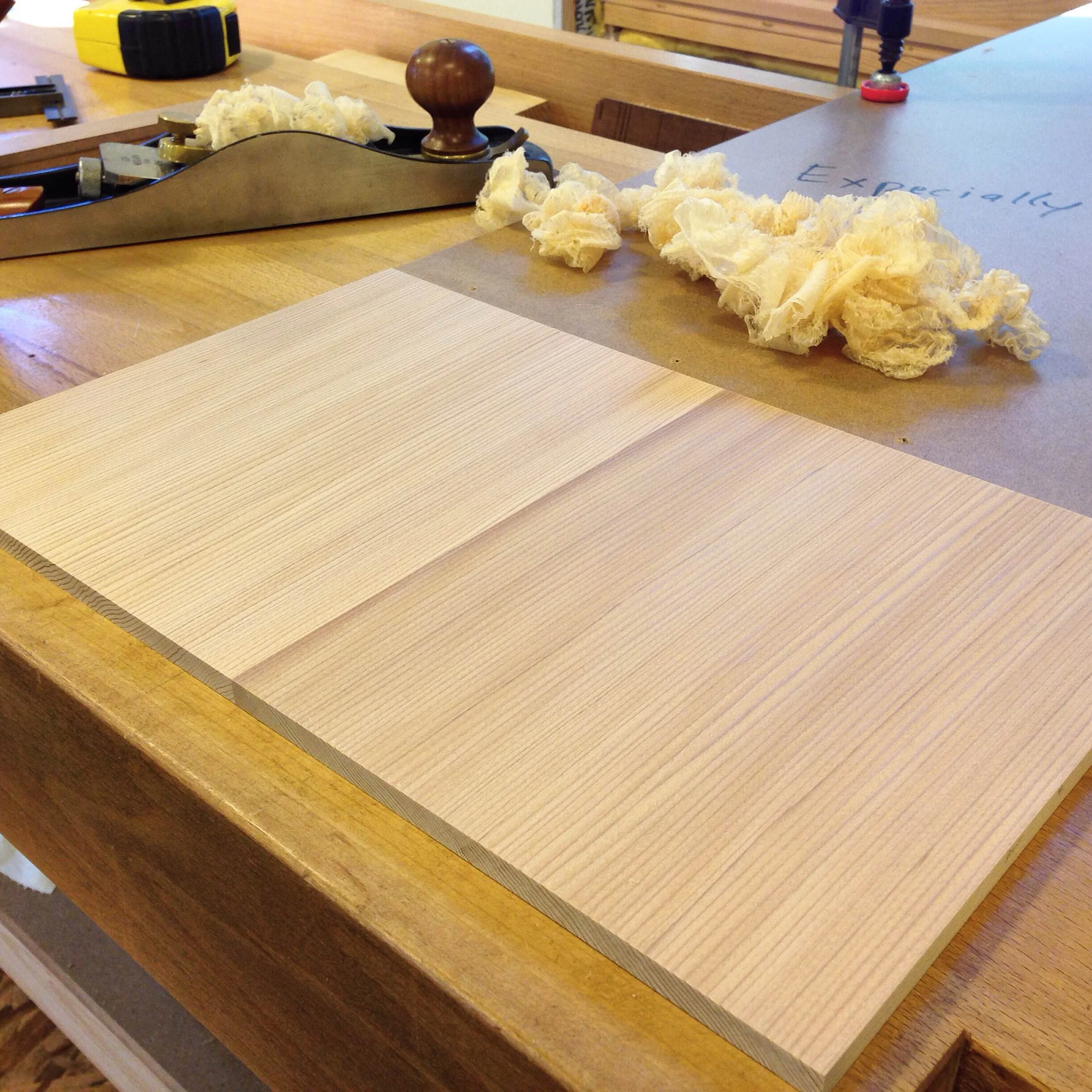 Here I'm working the drawer bottoms with a #lienielsen number 62. I've slightly cambered the iron and using the plane as a smoother. The material is western red cedar - beautiful, clear, straight grained. Plus the smell is pretty sweet.