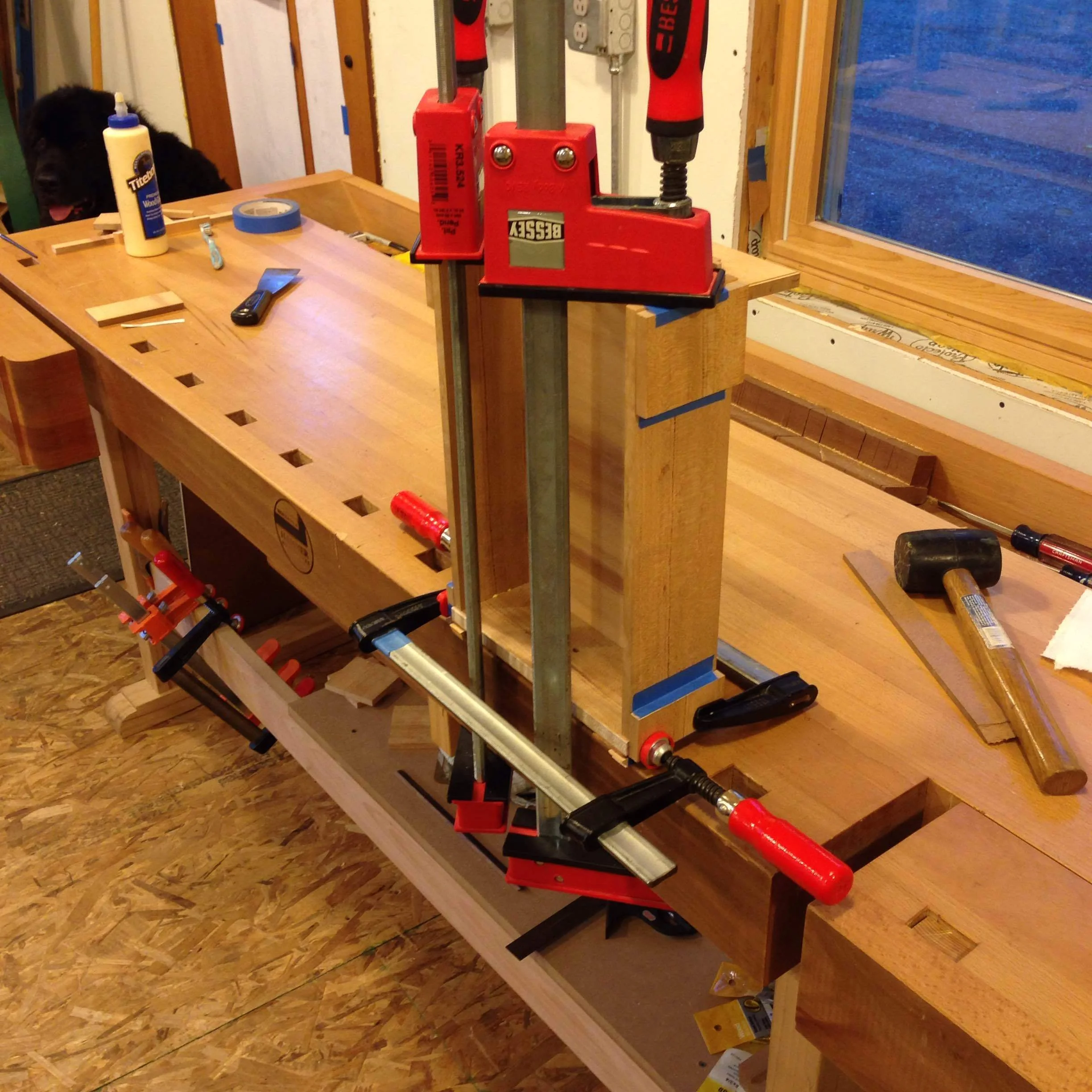 The culmination of lots of work: assembling the drawers. I approach every glue-up with some amount of apprehension, and tackling these drawers is no exception. At this point, things have to go right. I think they did, but we'll have to wait until I start fitting the drawers to see how everything came out.